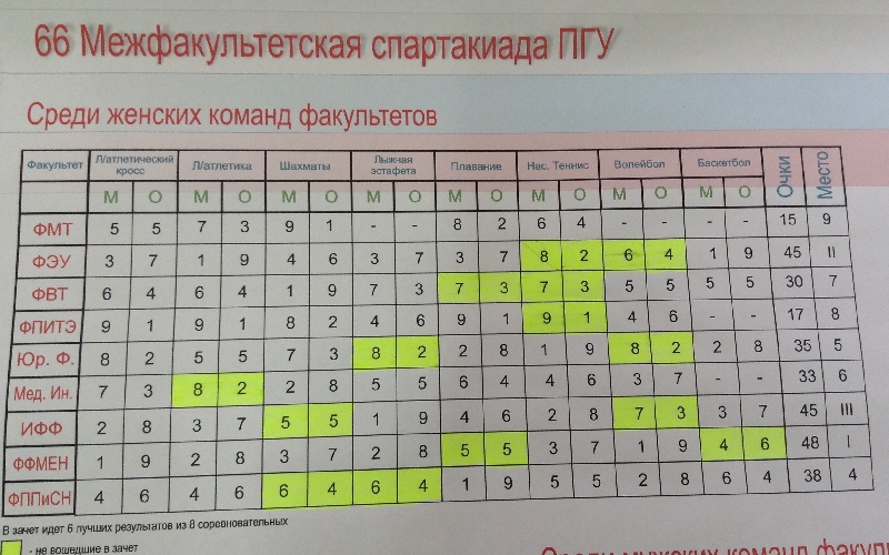Итоги 66-ой межфакультетской Спартакиады ПГУ