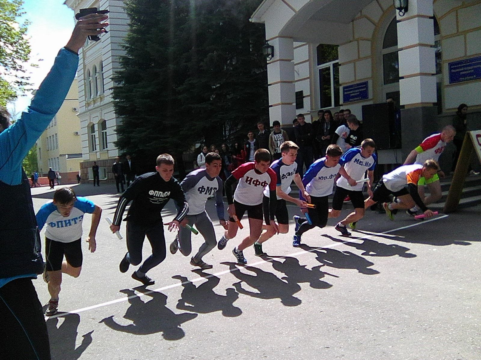 Сегодня состоялась, ставшая уже традиционной, эстафета по территории ПГУ. В упорной борьбе победу одержали юноши и девушки юридического факультета, они со второго этапа заняли лидирующую позицию и так победили. На втором месте педагоги - студенты историко-филологического факультета. На третьем месте студенты факультета машиностроения и транспорта.