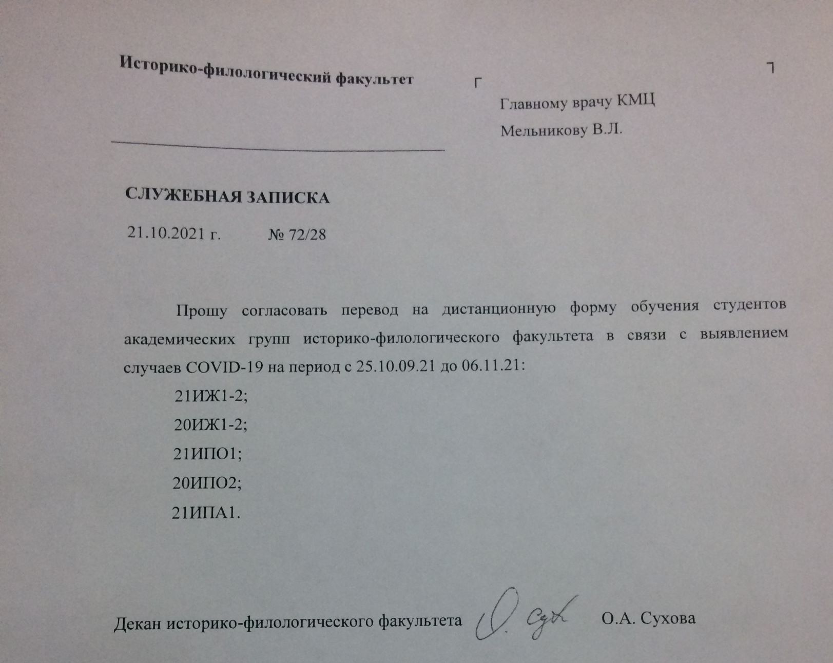 Студенты ИФФ групп, представленных в служебной записке, переводятся на дистанционное обучение. Задания по дисциплинам "Физическая культура и спорт" и "Элективные дисциплины по физической культуре" будут представленны преподавателями в Zoom.