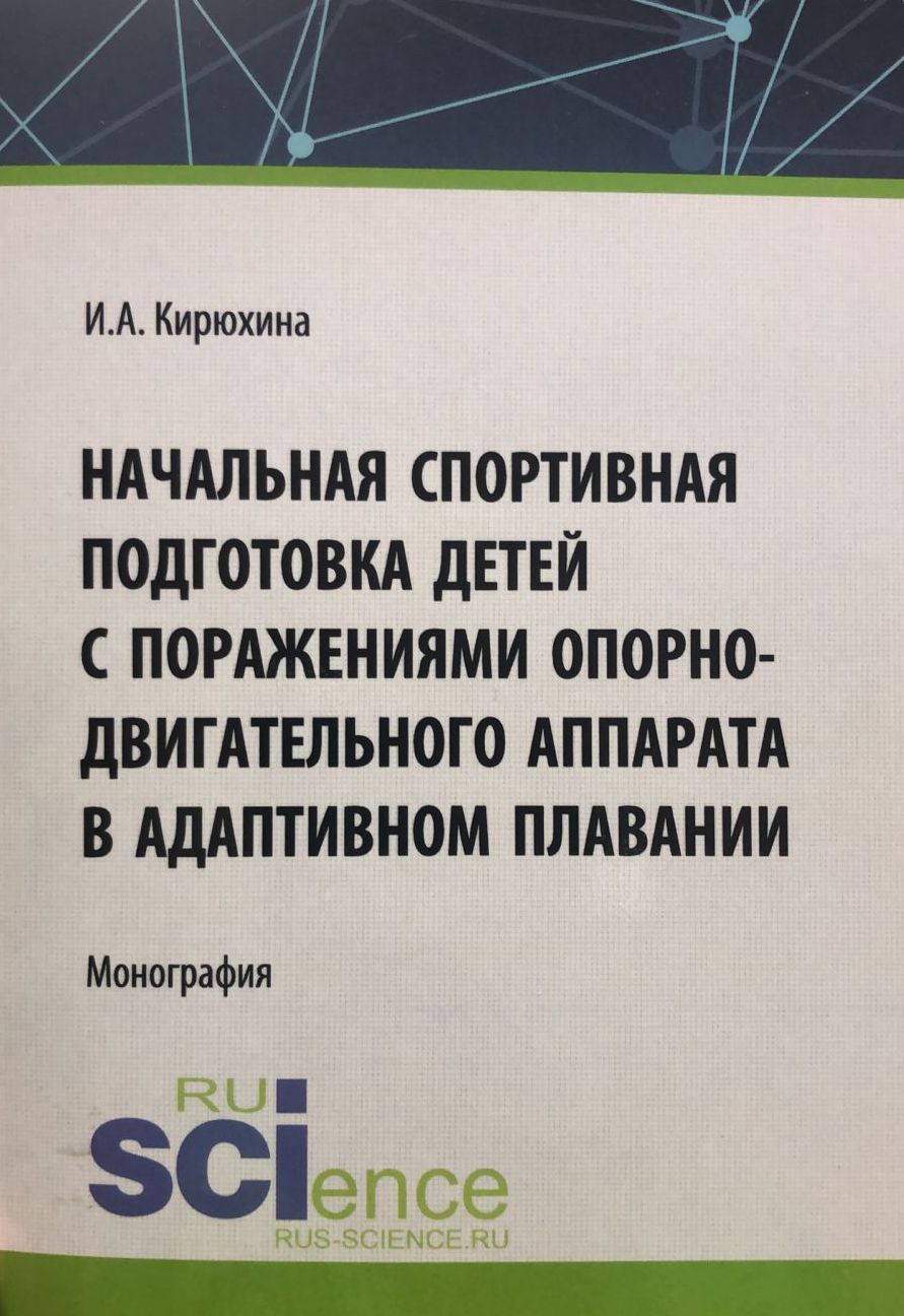 Опубликована монография заведующего кафедрой "Физическое воспитание", к.п.н., доцента Кирюхиной Ирины Анатольевны "Начальная спортивная подготовка детей с поражениями опорно-двигательного аппарата в адаптивном плавании".